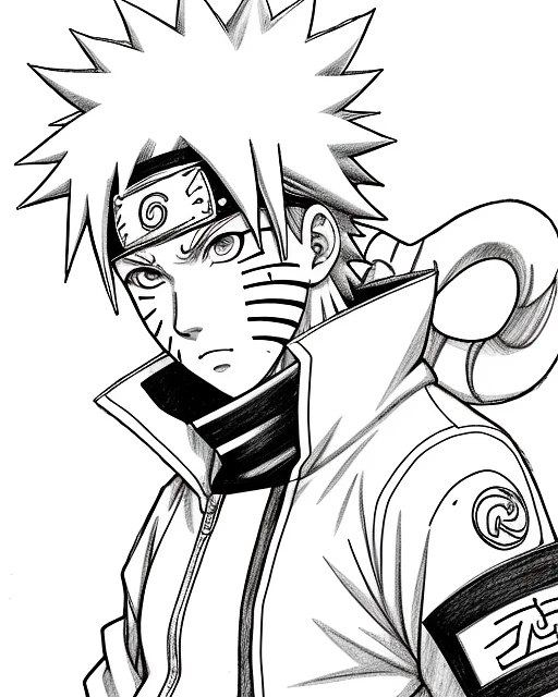 Naruto Uzumaki, illustration line art, anime, manga, pencil sketch, pencil drawing, inking, black and white trending pixiv fanbox, simple line art