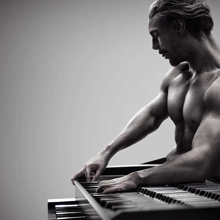 pianist, male, intricate details, fineart, max details, Ultra realistic, photo realism, perfect anatomy, precise features, cinematic lighting, unreal engine, volumetric lighting, octane render, vray render, 8k, HDR, RTX