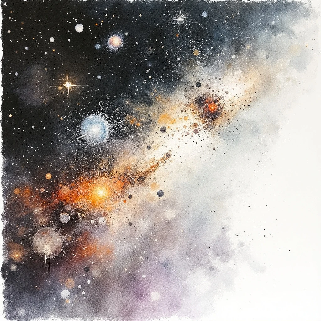 illustration of space dusts, in space, universe, galaxies, by Jeremy Mann, Hugo Pratt, Milo Manara, Enki Bilal, Jean Baptiste Monge, wet ink, charcoal sketch