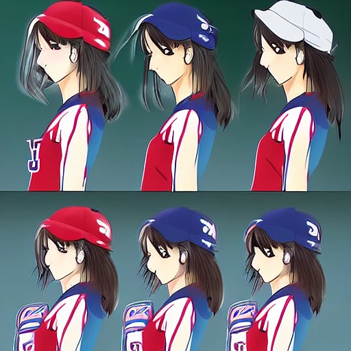 Beautiful highschool girl in baseball uniform turns around with a smile , long hair in buns, anime, detailed --v 4