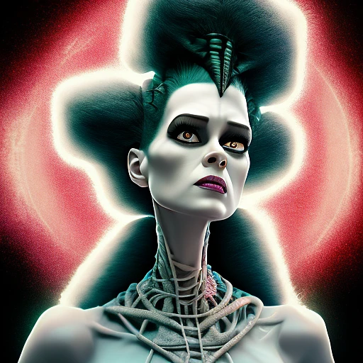 portrait of Bride of Frankenstein, bright vibrant colorful, poster art --aspect 3:4 . octane render, trending on artstation, t symmetrical artwork. cinematic, hyper realism, high detail, octane render, 8k