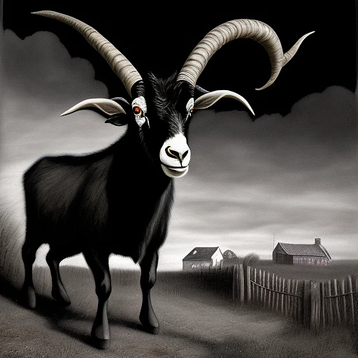 Menacing Black Billy Goat in Puritan New England, by Godmachine, by DZO Olivier, by Scott M. Fischer, horror, esoteric, hypnogogic, hyperviolence, hyperrealism