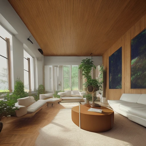 High resolution photography interior design, dreamy sunken living room conversation pit, wooden floor, small windows opening onto the garden, bauhaus furniture and decoration, high ceiling, beige blue salmon pastel palette, interior design magazine, cozy atmosphere; 8k, intricate detail, photorealistic, realistic light, wide angle, kinkfolk photography, A+D architecture