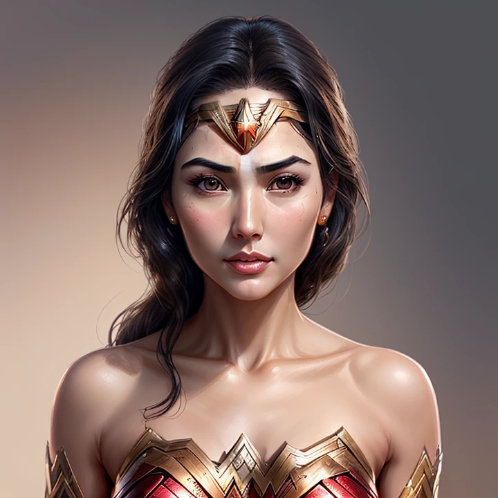 Wonder Woman Dress up, Delicate Smooth female, bust Portrait, Asian actress face, super Clear facial details, elegant, realistic: 1, Perspective, highly detailed, digital painting, art station, concept art, Smooth, Sharp focus, illustration, 8k