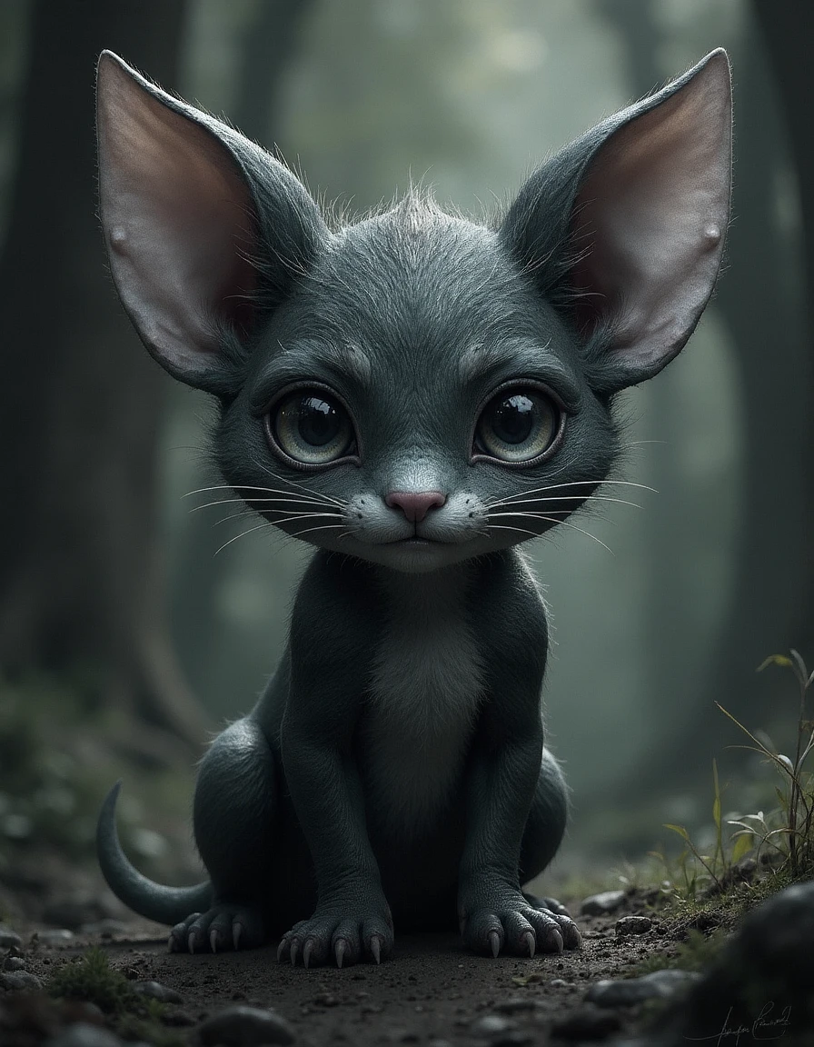 olpntng style, Cute little fantasy animal dark creature, dark forest, 4k, symmetrical, soft lighting, detailed face, trending on artstation, intricate details, highly detailed, pencil drawing, sketching, unreal engine, Brian Froud, oil painting, heavy strokes, paint dripping, oil painting, heavy strokes, paint dripping