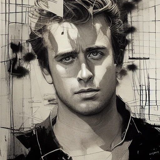 portrait of a mix of Armie Hammer and James Dean sechan, pen and ink, complex line drawings, by craig mullins, ruan jia, kentaro miura, greg rutkowski, loundraw
