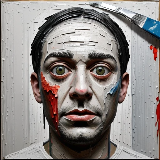 terrified man's face, eyes opened wide, pallet knife painted, thick textured, thick layers of paint