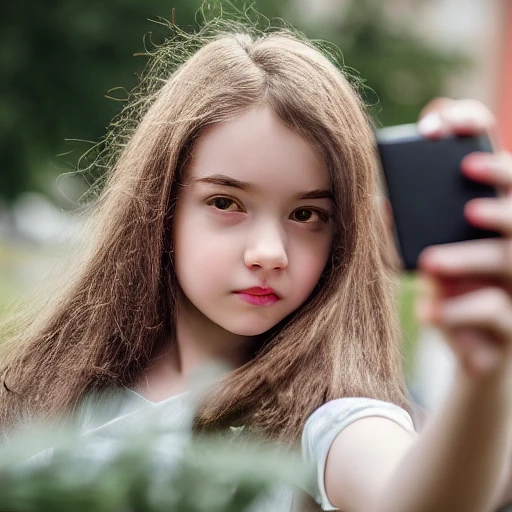 young girl selfie, ultra realistic, 8k, very detailed, shoot with Sony Alpha a7R IV, FE 70-200mm f/2. 8 GM OSS lens ISO 800 , -w 2176 –h 3840 --s 1500 –iw 1 --raw --seed 444