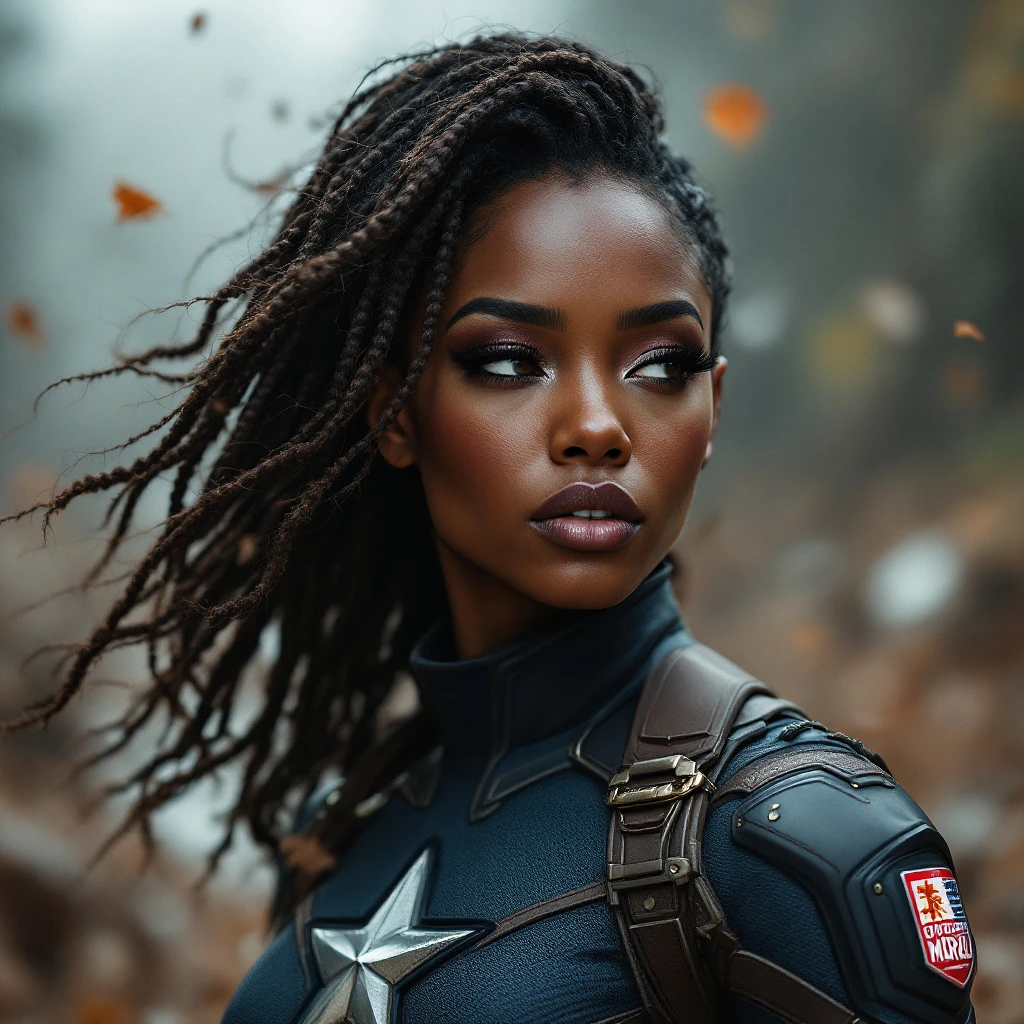 black female African , (as captain america) ,