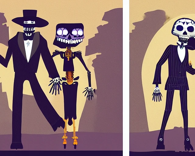 digital painting concept art for grim fandango with manuel calavera, lucasarts game, mexican day of the dead, colourful, humanoid skeleton in a pinstripe suit, smooth median photoshop filter cutout vector, noir, detective, casablanca, behance hd by jesper ejsing, by rhads, peter tsacle, makoto shinkai and lois van baarle, ilya kuvshinov, rossdraws, rex crowle global illumination