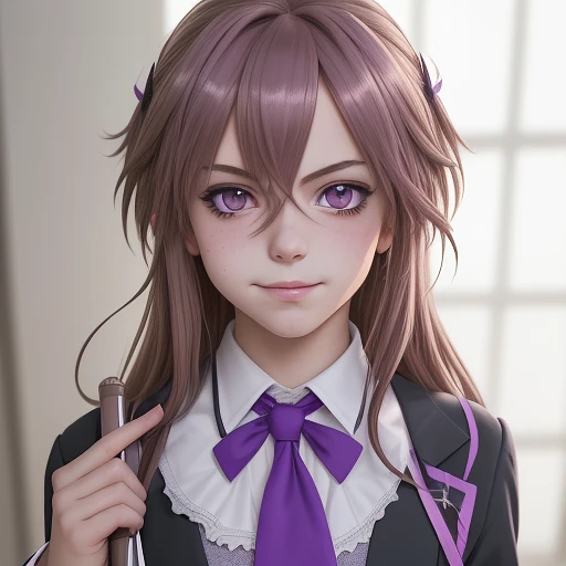 (Masterpiece, best quality) , bust up view, 1boy, close-up, portrait, purple eyes, smirk, looking at viewer, dynamic pose, school uniform, skirt, dk_astolfo <lora:add_detail:1> <lora:Astolfo v4 last:1>