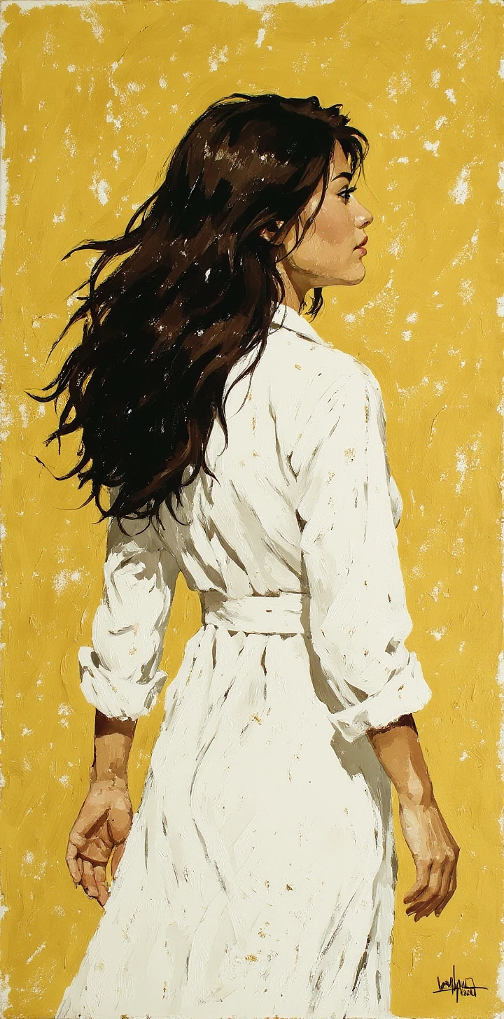 a painting of a woman, in the style of brushstroke-intensive portraits, walking away from Canes , flowing brushwork --chaos 75 --ar 1:2 --profile n19tbh9 --stylize 750 --v 7