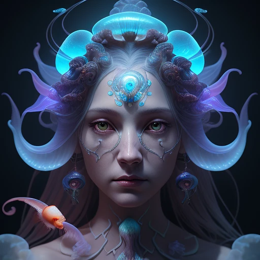 Goddess close-up portrait ribcagel. jellyfish phoenix head, nautilus, orchid, skull, betta fish, bioluminiscent creatures, intricate artwork . octane render, trending on artstation, t symmetrical artwork. cinematic, hyper realism, high detail, octane render, 8k