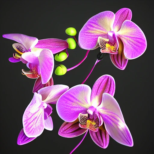 close-up orchid, bioluminescent, intricate artwork, octane render, trending on artstation, symmetrical artwork. cinematic, hyper realism, high detail, 8k