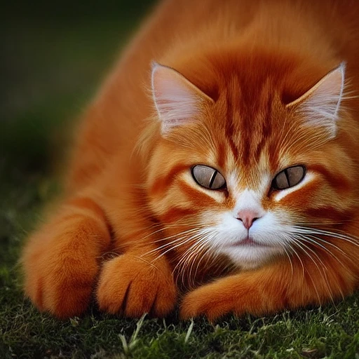 Title: Serene Ginger Cat Recommended aspect ratio: 1:1 Prompt: (masterpiece, high resolution, manga style:1.3) , adorable ginger cat, (resting head on paws:1.2) , (curious amber eyes:1.1) , (intense gaze:1.1) , (directly looking into the camera:1.1) , soft fur, (vibrant orange color:1.2) , black stripes on face and tail, (playful expression:1.1) , (whiskers twitching:1.1) , (pointed ears:1.1) , (rounded nose:1.1) , (subtle blush on cheeks:1.1) , (catchlight in eyes:1.1) , (manga-style shading:1.2) , (clean lines:1.1) , (expressive linework:1.1) , (dynamic perspective:1.1) , (pastel background:1.2) , (delicate cherry blossom petals:1.1) , (gentle sunlight:1.1) , (peaceful atmosphere:1.1) , (dreamy ambiance:1.1) . Serene Ginger Cat In this manga-style masterpiece, a captivating ginger cat takes center stage. The adorable feline rests its head on its paws, gazing directly into the camera with curious amber eyes. Its intense gaze draws you in, revealing a playful expression and twitching whiskers. The cat's vibrant orange fur, adorned with black stripes on its face and tail, stands out beautifully against the clean lines and expressive linework of the manga style. The cat's pointed ears and rounded nose add to its charm, complemented by a subtle blush on its cheeks. Catchlights in its eyes bring life and depth to the artwork. The meticulous manga-style shading enhances the three-dimensionality of the cat, creating a captivating visual effect. The dynamic perspective captures the cat's essence, giving a sense of movement and liveliness. The cat is depicted against a pastel background, featuring delicate cherry blossom petals floating gently in the air. Soft sunlight bathes the scene, creating a peaceful and dreamy ambiance. The overall atmosphere exudes serenity, inviting viewers to immerse themselves in the enchanting world of this manga-inspired ginger cat.