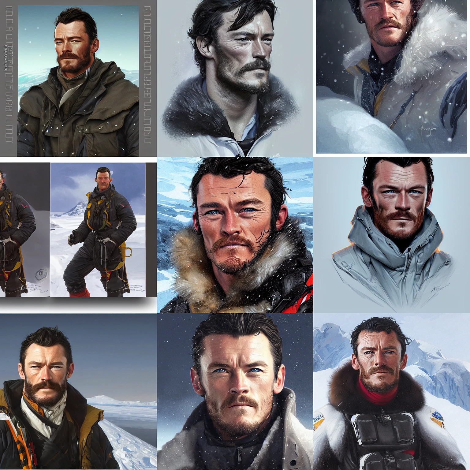 male polar explorer, luke evans, portrait, highly detailed, digital painting, artstation, concept art, sharp focus, illustration, art by artgerm and greg rutkowski and alphonse mucha