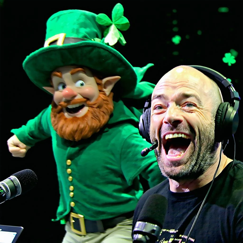 Joe Rogan catches a leprechaun breaking onto his set during a podcast and chases after it in a panicked frenzy