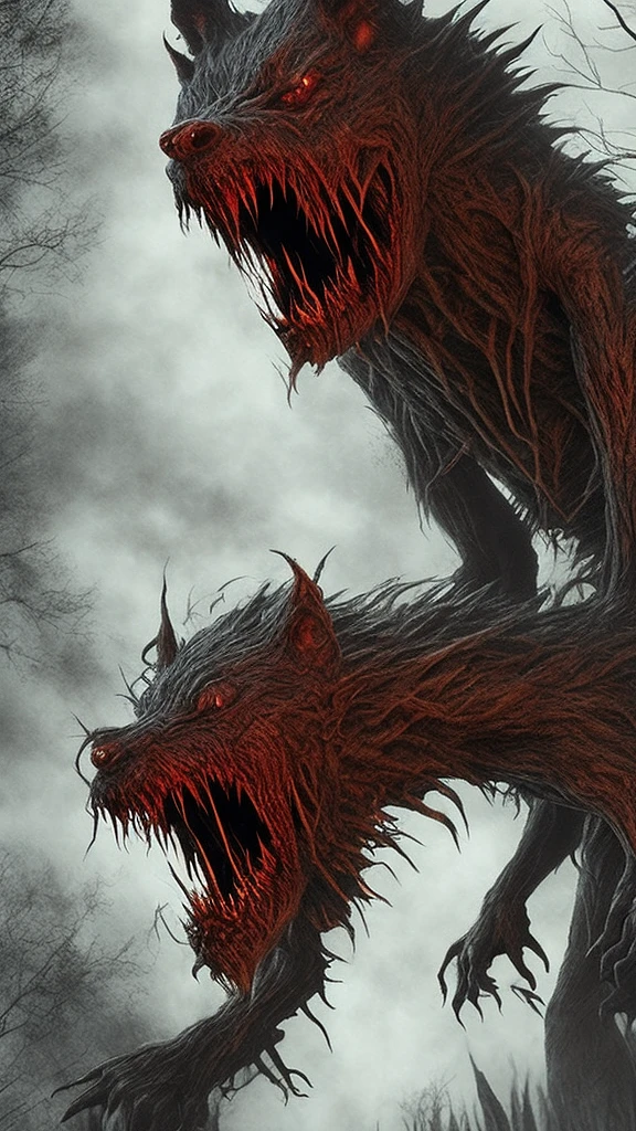 The Rougarou: A extreme nightmare version, highly detailed, advanced 3D techniques, distorted features, unsettling aura, photorealistic, dynamic light, creepy. A monstrous wolf-man with red eyes and razor-sharp teeth, standing on its hind legs and towering over the swamp. Its fur is matted with mud. It snarls and howls at the moon, sending shivers down the spine of anyone who hears it. The swamp is dark and foggy, with twisted trees and vines. The water is murky and full of leeches and snakes. The only light comes from the fireflies and the glowing eyes of the Rougarou.