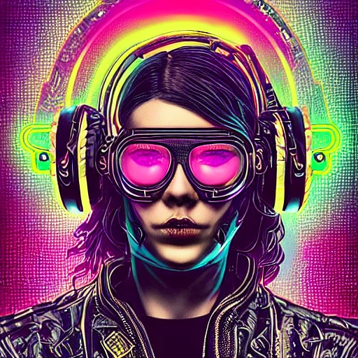 nft style, cyberpunk, synthwave, tarot card with intricate detailed frame around the outside | with cyberglasses neon, and earphone, dj sound, futuristic, gold, diamond, side profile of cyberpunk body with cyborg skull | cyberpunk | styled in Art Nouveau | insanely detailed | embellishments | high definition | concept art | digital art | vibrant, hyperdetailed, intricate, kaleidoscope, extremely beautiful, ranking ligth, cinematic lighting, photo realistic, white background max detail, ranking ligth, cinematic lighting, photo realistic, by mandy jurgens, moebus, jon foster, alphonse mucha, glazing, pablo picasso, pinot noir, chiaroscuro, leonardo da vinci, Michelangelo, 8k