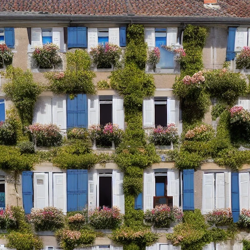 Image haute resolution, facade vieille maison, quatre etages, lausane vieille ville, vue du sol, vue de quatre etages, vue du toit, vue d'un morceau de ciel, fleurs a quelques fenetres,