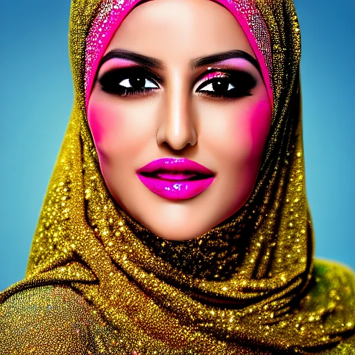commercial photoportrait hijabi insragram model, covered in diamonds, bright colors, sun-soaked colours, Fujifilm X-T4, Sony FE 85mm --ar 900:1600 --s 750 --style raw --v 5. 2