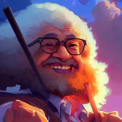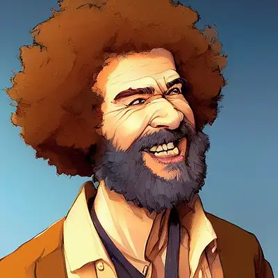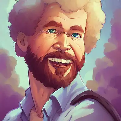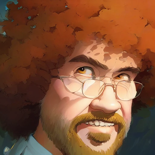 portrait Bob Ross focus cute eye enchanted official fanart behance hd artstation by Jesper Ejsing, by RHADS, Makoto Shinkai and Lois van baarle, ilya kuvshinov, rossdraws portrait, highly detailed, digital painting, concept art, sharp focus, cinematic lighting, art by artgerm and greg rutkowski and alphonse mucha radiant light, peter mohrbacher, ferdinand knab, artgerm, portrait happy colors, bright eyes, clear eyes, warm smile