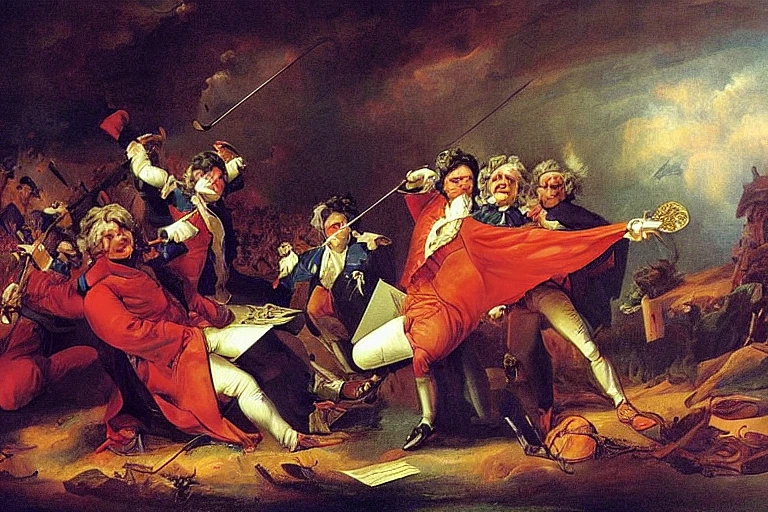 A 3D photograph of Beethoven vs Haydn having a mortal epic battle with swords and magical detailed armours inside a ring in the innermost part of a volcano, hyper-realistic, detailed, colourful, fantasy, action scene, good composition, the dark knight film ambient