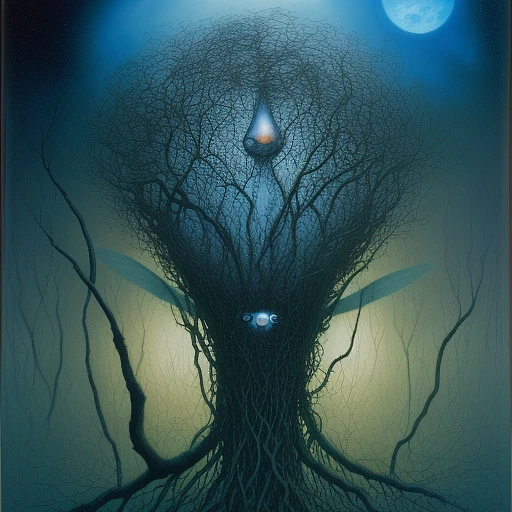 flies on top of twigs and roots in the sky, in the style of tony oursler, finely textured brushwork, medical imaging film. , nightmarish visions, bob eggleton, elongated forms, shiny eyes --ar 4:3 --v 5. 2