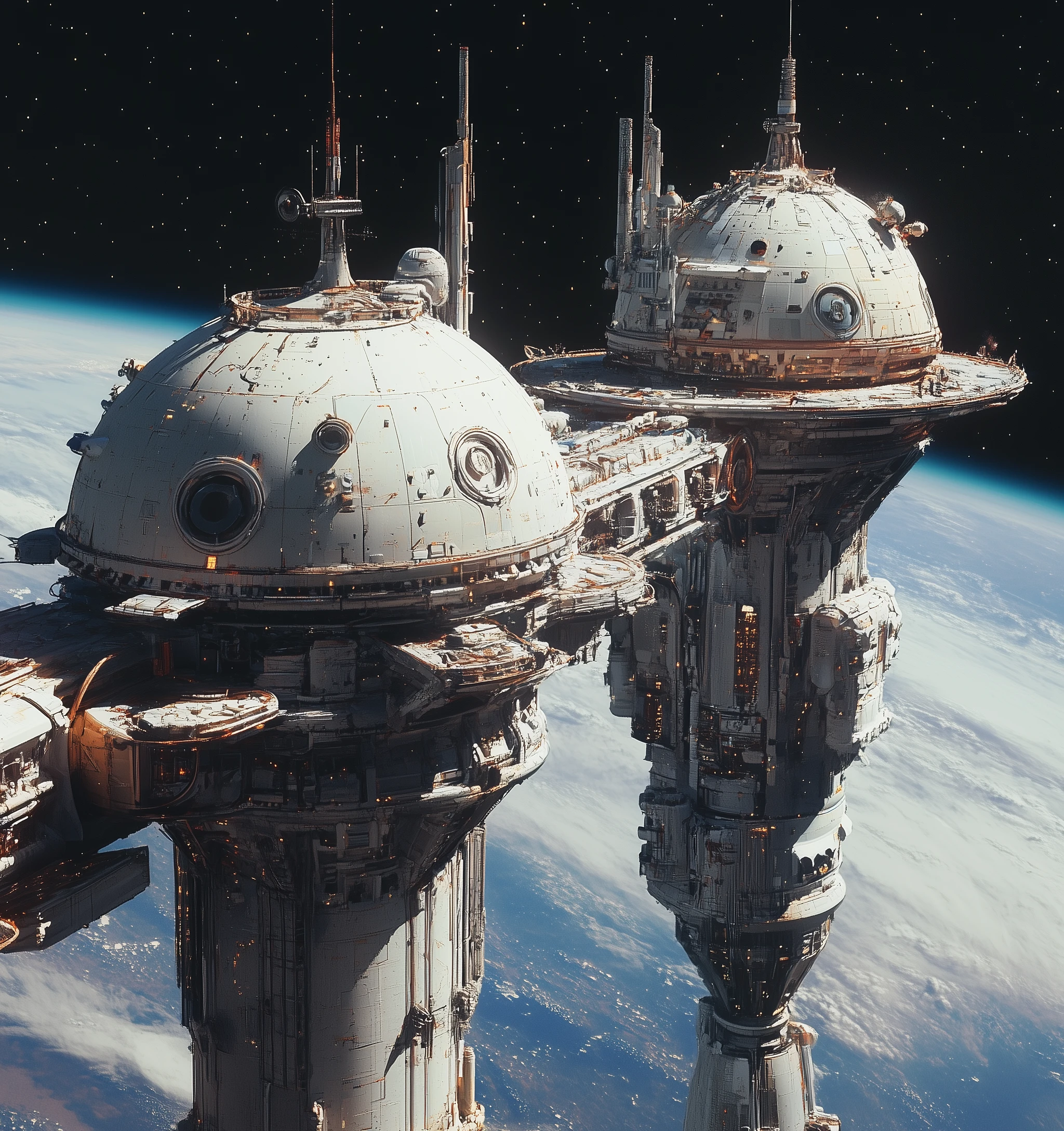 Futuristic space station, in the style of Gerald Brom and Roger Dean, space opera concept art --c 25 --ar 50:53 --v 6. 1 -