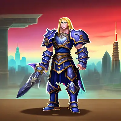 , Create a high-resolution 8k image of a Retribution Paladin from World of Warcraft. The Paladin is clad in gleaming, ornate full plate armor, radiating celestial light. He wields a massive, intricately designed two-handed sword that glows with holy energy. The setting is a dark, foreboding battlefield where the Paladin stands heroically, facing a horde of grotesque demons. Vivid beams of divine light pierce the sky, illuminating the Paladin and casting long shadows across the demon-infested ground. The image should capture the dynamic action of the Paladin charging into battle, with a dramatic, epic atmosphere. Use aspect ratio 16:9, quality setting 2, and version 5 to enhance the visual detail and impact.