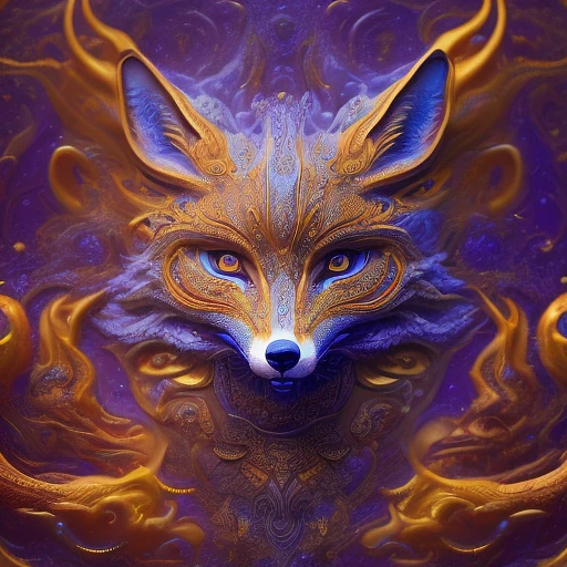 <lora:openjourneyLora_v1:1> | ornate and intricate mythical fox demon| psychedelic| turbulent fluid| fractal| smokey| symmetrical| sharp focus| vibrant| volumetric fog| studio lighting| depth of field| unreal engine| octane render| raytracing