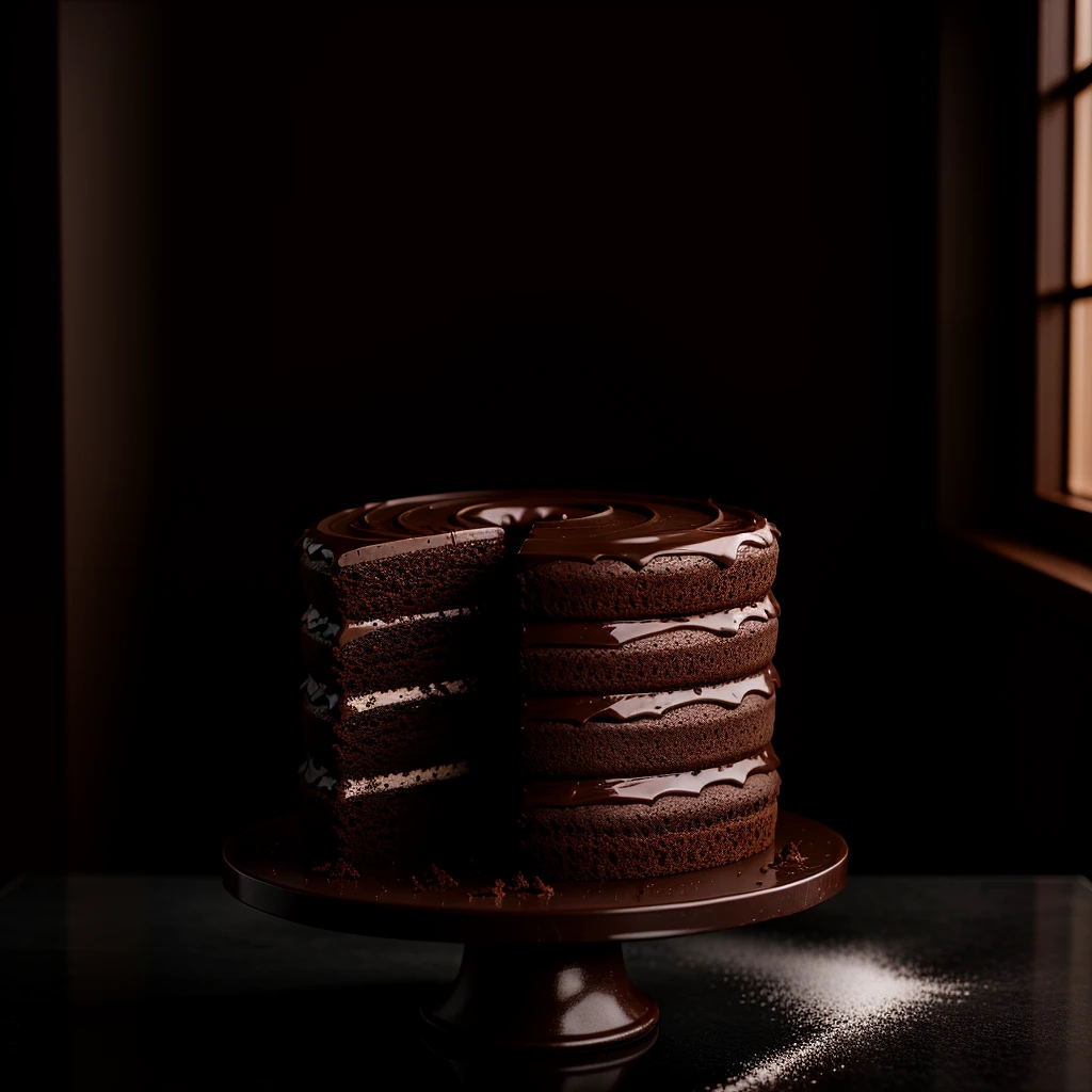 Food photography, chocolate cake, in a luxurious Michelin kitchen style, studio lighting, depth of field, ultra detailed, natural features