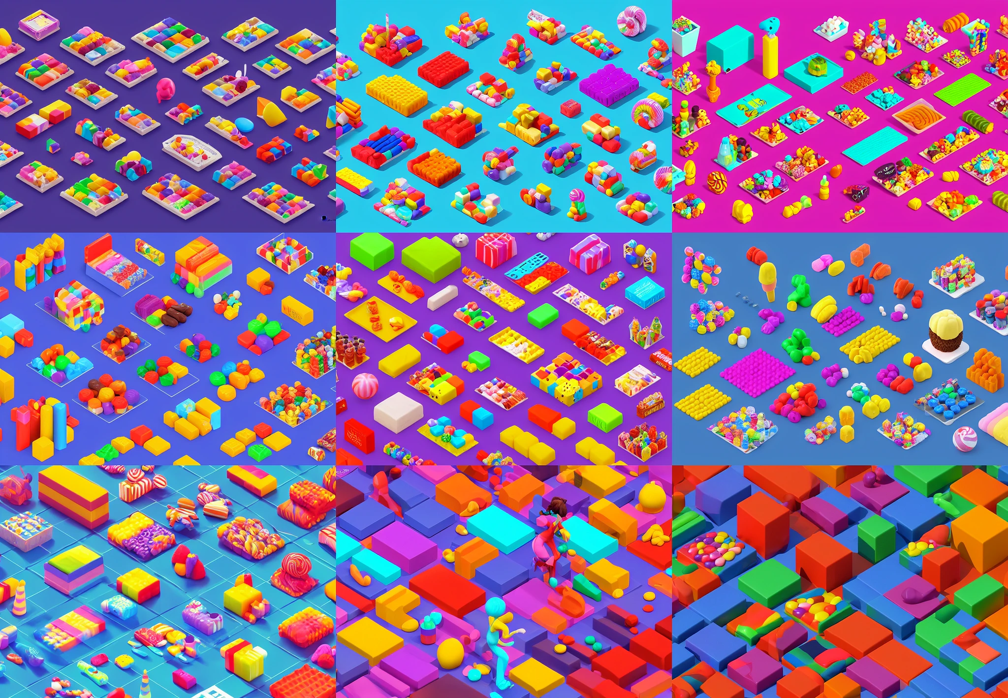 3 - d isometric grid, candy themed items for game, large, myvmk, with detailed, clean, cartoon, pixar, disney, toon shader, arnold render, unreal engine, artgerm, artstation by miha rinne