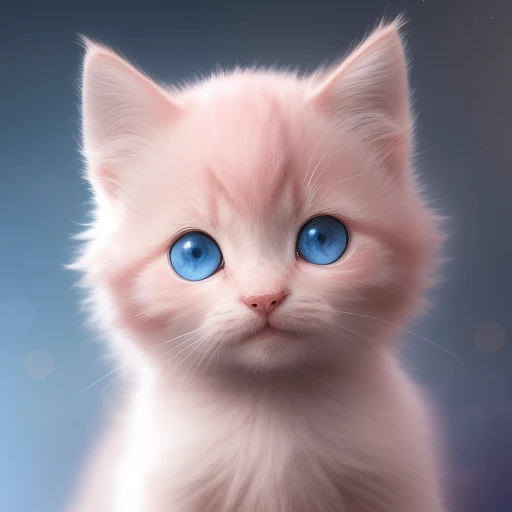 Portrait photo of cute pink kitten with fill of lightening colors, blue eyes, light bokeh, light background, elegant, sharp focus, i, soft lighting, vibrant colors, masterpiece, (streets) , 8k details, high quality, --ar 9:16