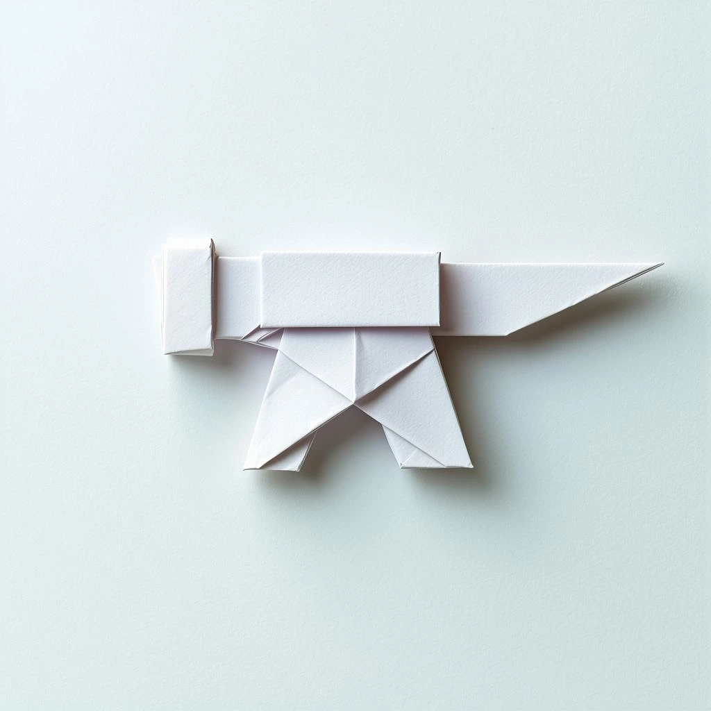 minimalist origami anvil, construction, white paper is the style, working as a logotype