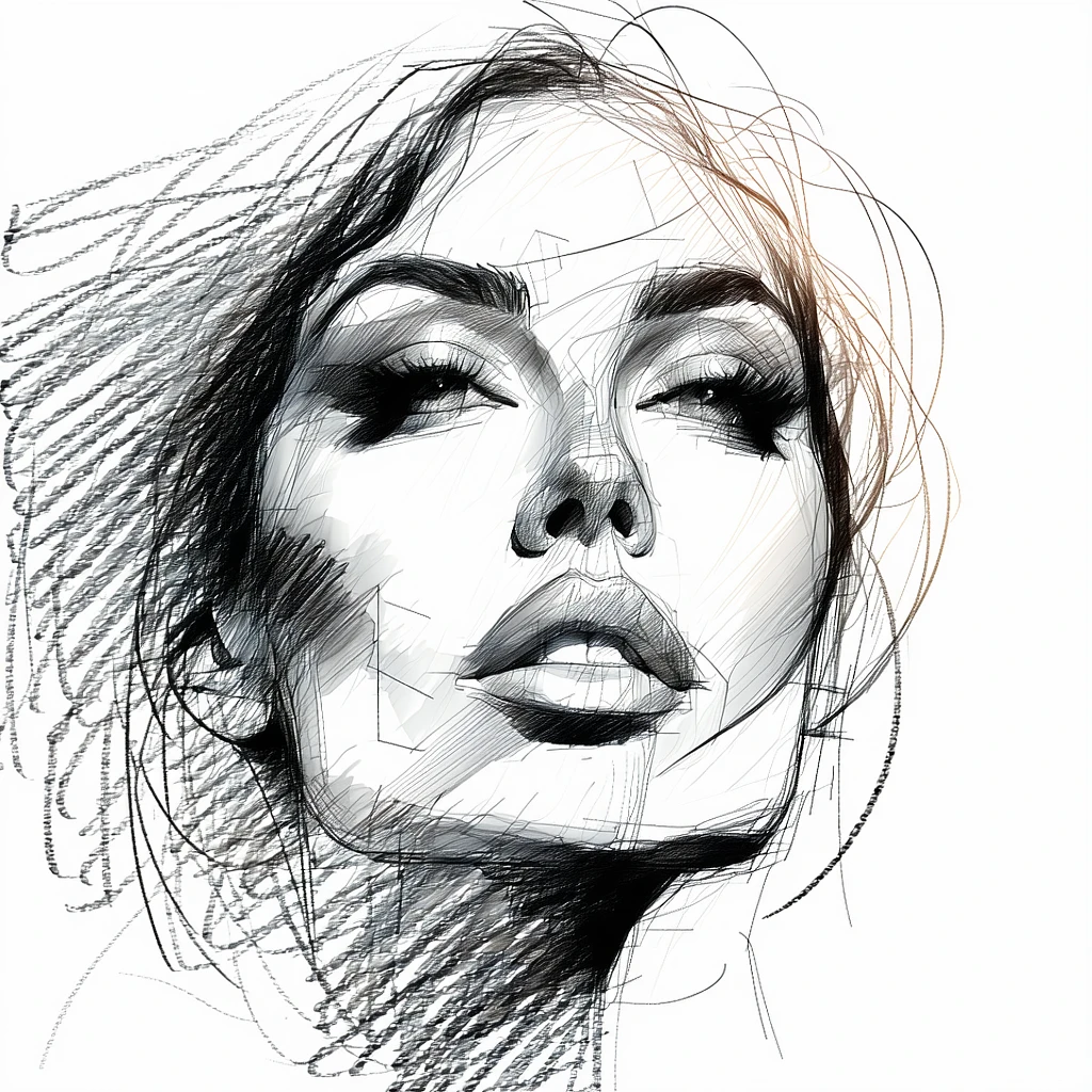 sketch of a woman's face, expressive line-work, in the style of beautiful portraits --ar 35:64 --stylize 750
