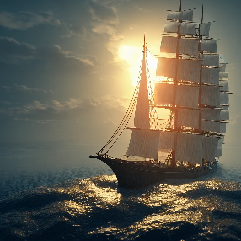 photo of a ultra realistic sailing ship, dramatic light, pale sunrise, cinematic lighting, battered, low angle, trending on artstation, 4k, hyper realistic, focused, extreme details, unreal engine 5, cinematic, masterpiece, art by studio ghibli, intricate artwork by john william turner