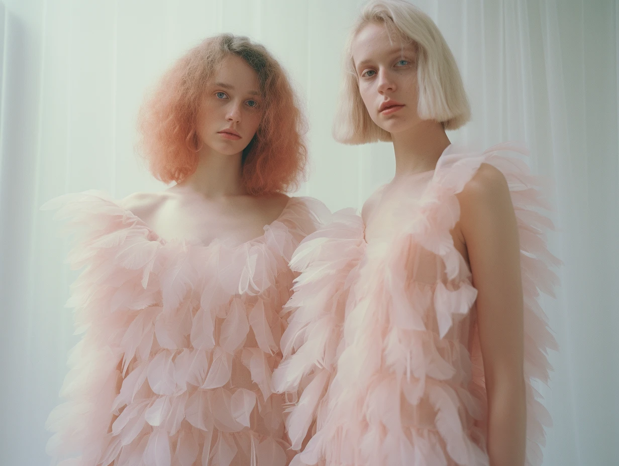 Kodak_disposable_photography_of_puff_frill_dress_made_of_featherdress, minimalism, modern,