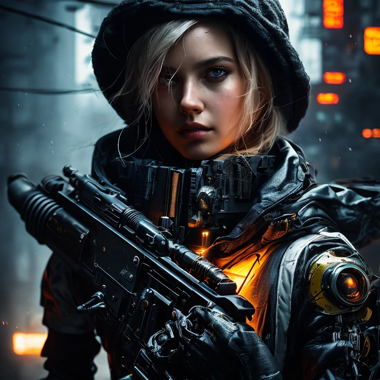 mj, (close up:1.1) art a [robot | terminator | cyborg | futuristic soldier] , holding a futuristic rifle, proud pose, epic scene, cyberpunk, cinematic, mist, maximum details