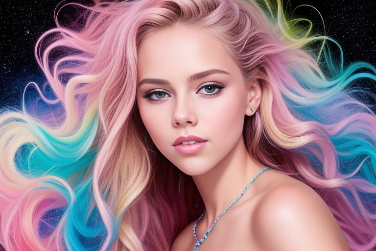 ultra realistic photo portrait of Scarlett Leithold cosmic energy, colorful, painting burst, beautiful symmetrical face, nonchalant kind look, realistic round eyes, tone mapped, intricate, elegant, highly detailed, digital painting, artstation, concept art, smooth, sharp focus, illustration, dreamy magical atmosphere, art by artgerm and greg rutkowski and alphonse mucha, 4k, 8k (high detailed skin:1.2) , 8k uhd, dslr, soft lighting, high quality, film grain, Fujifilm XT3