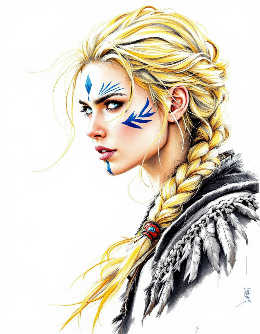 FLUX prompt: color pencil drawing of a Viking warrior woman wit...