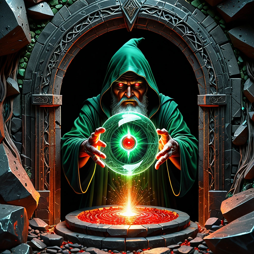 wizard entering a mysitcal portal into another realm