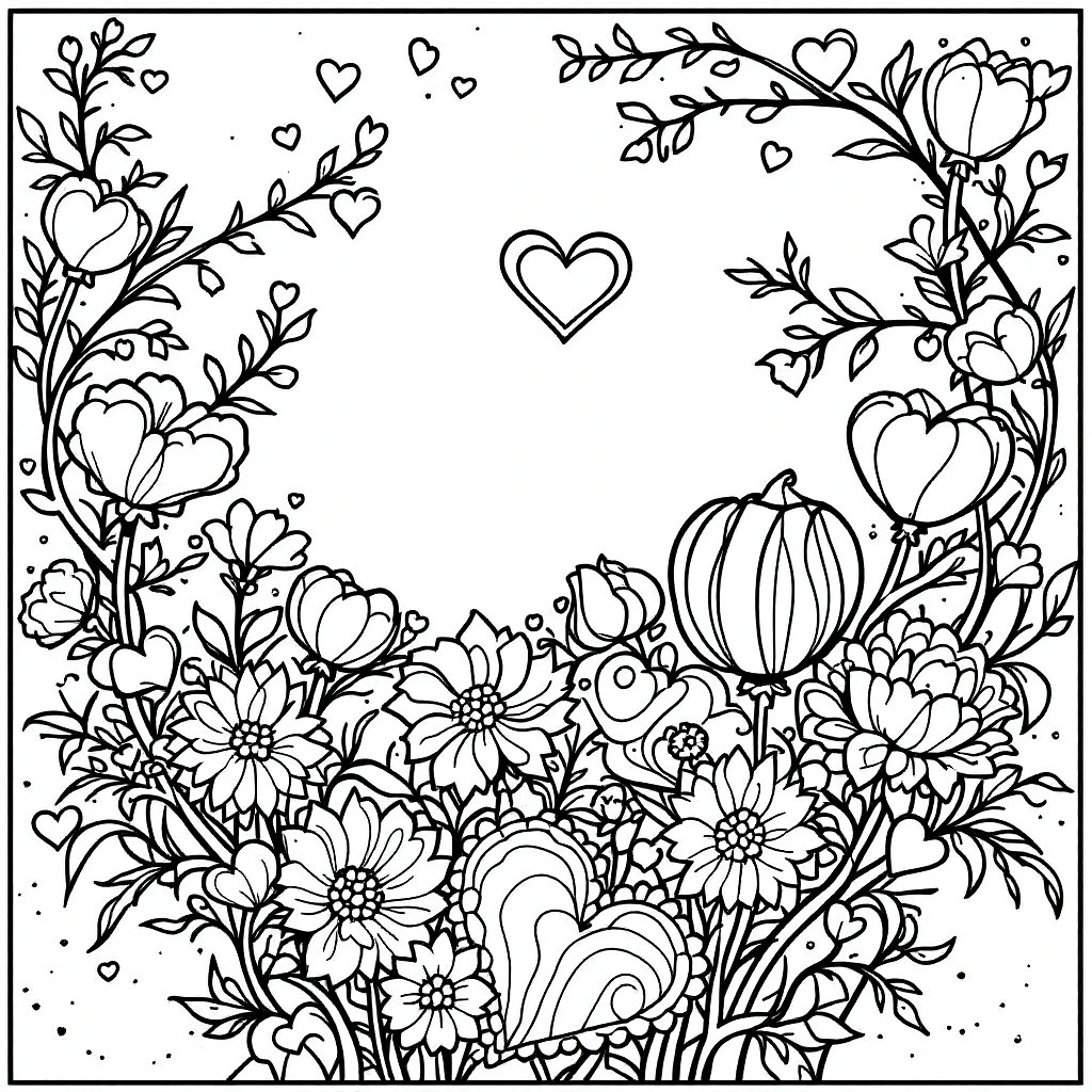 cute and full of candy and flower , hearts black and white lines valetine's day coloring page