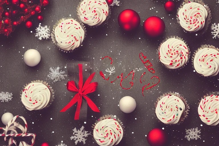 top down, christmas, cupcakes and christmas, f3. 6, macro shot, food photography, realistic, hyper-detailed, stock photo, shutterstock, photo, varied - @amped (relaxed)
