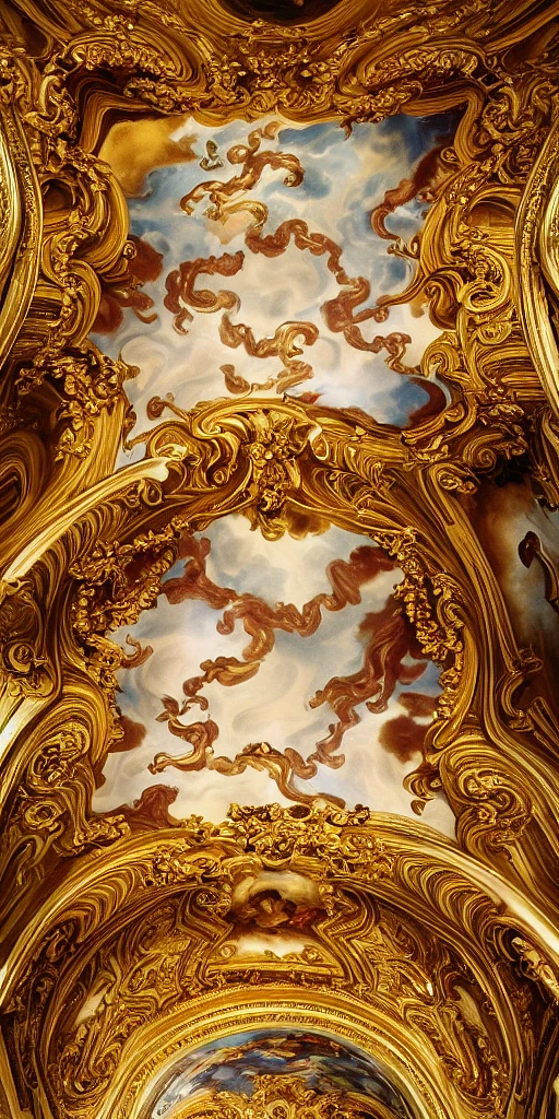 the source of future growth dramatic, elaborate emotive Golden Baroque and Rococo styles to emphasise beauty as a transcendental, seamless pattern, symmetrical, large motifs, sistine chapel ceiling, 8k image, supersharp, spirals and swirls in rococo style, cartouches, white smoke and rainbow ink dropping in water, Gold black and rainbow colors, perfect symmetry, 3D, no blur, sharp focus, photorealistic, insanely detailed and intricate, cinematic lighting, Octane render, epic scene, 8K