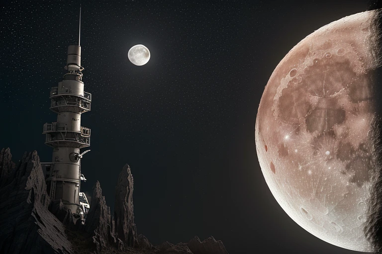 Photo of a ultra realistic single Moon, bright light, cinematic lighting, battered, low angle, trending on artstation, 8k ultra HD, hyper realistic, focused, extreme details, unreal engine 5, cinematic, masterpiece, art by studio ghibli, intricate artwork by john william turner