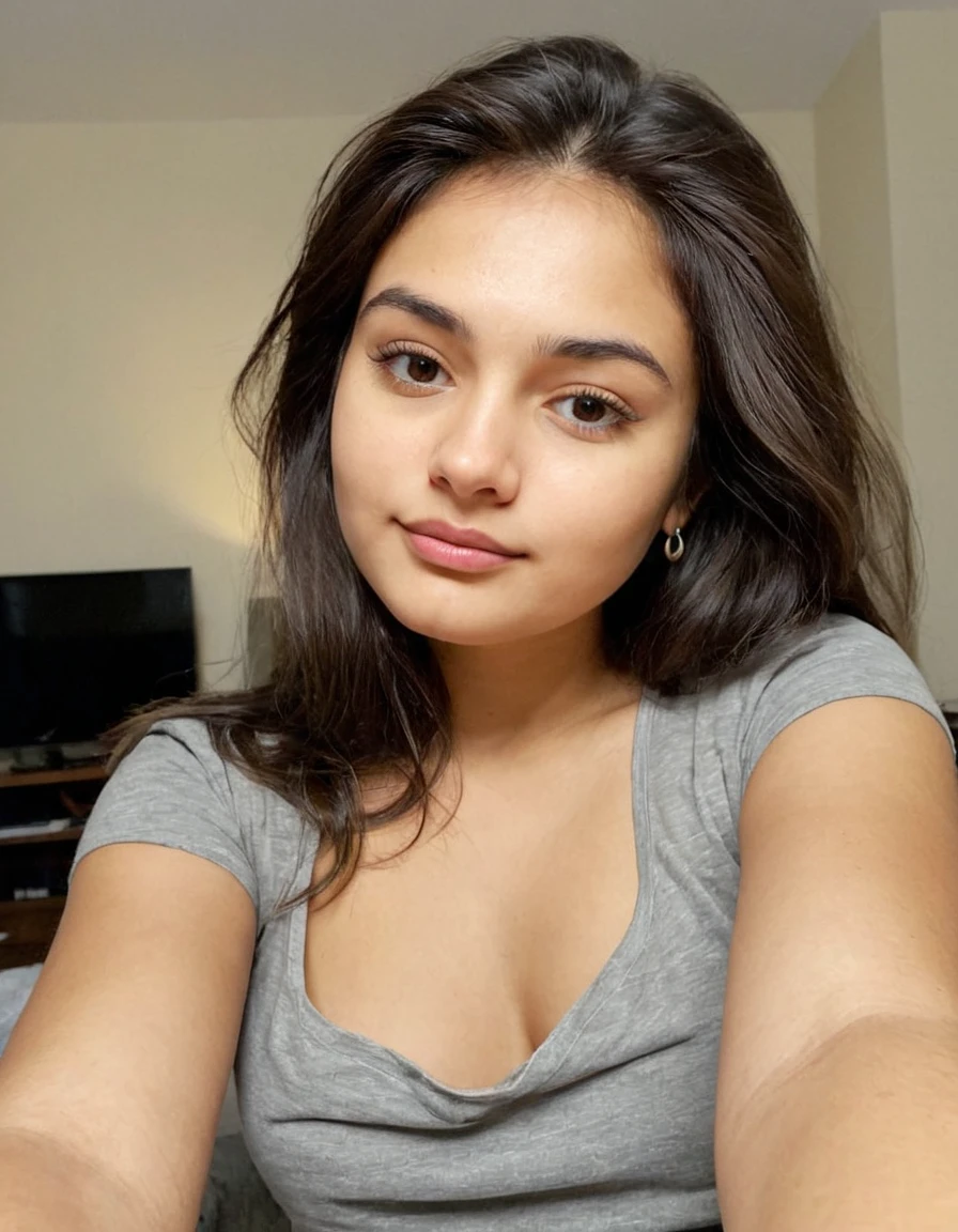 21 year old Indian girl , on bed, wearing a tank top , naughty face , Keeping face same , generate more pics , hot girl Partial face , selfie image . keep background same , similar color scheme of room , similar furniture. Same clothes. Different natural human poses, Realistic poses , different facial expressions, unprinted , hair messily , Samsung m33 phone , shy. no make up , dim lighting , close up portrait , sleepy , small chest , make realistic background