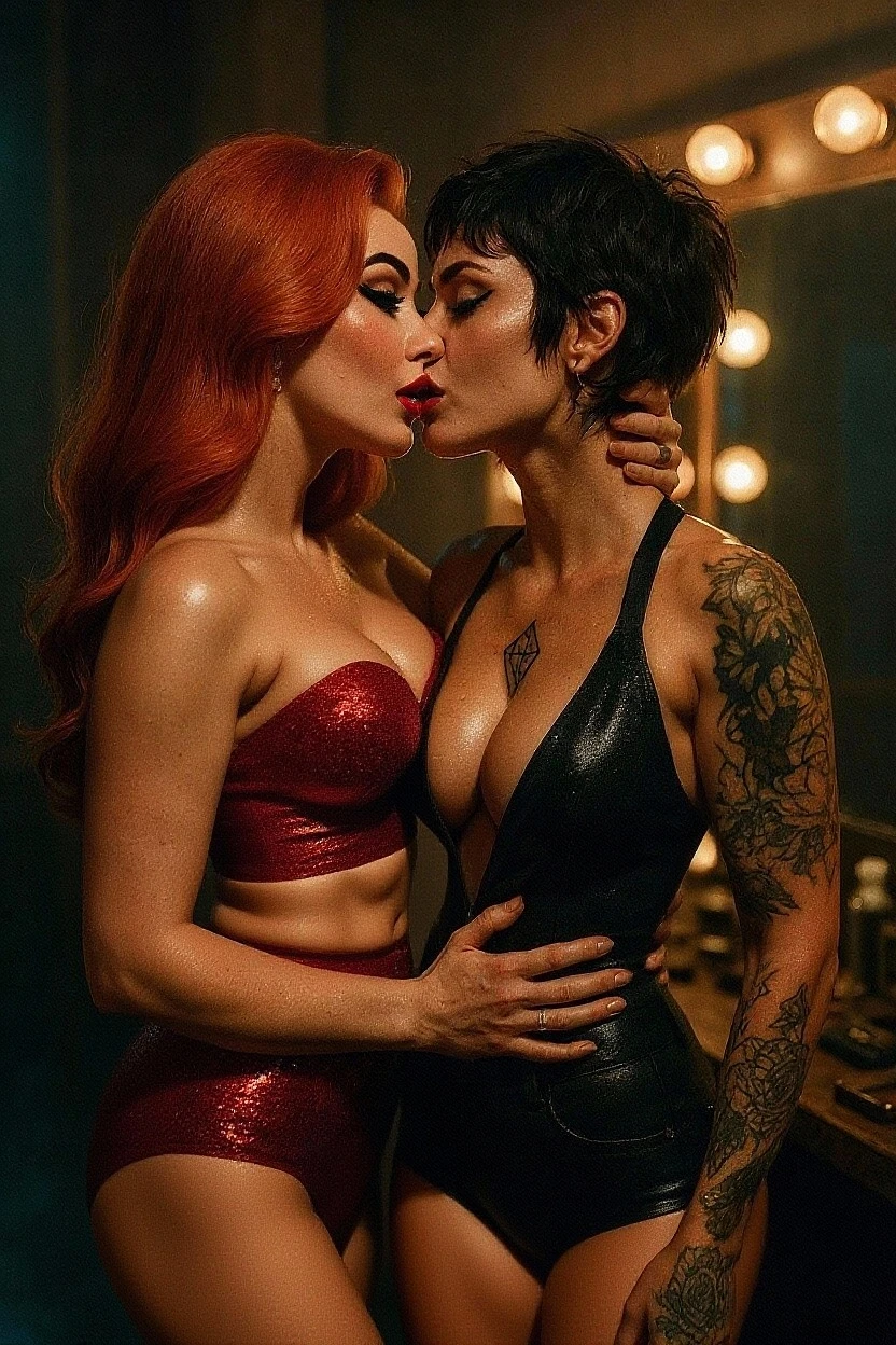 MAKE BOTH MODELS MUCH THICKER upscale image and make 8k, Slim the waist, enhance the busts so it's pinup style with impossibly thin fit waists