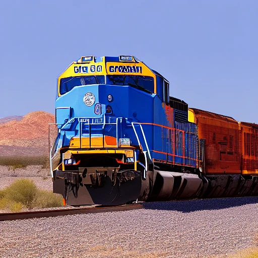 realistic photo of an emd gp38-2 locomotive machine, desert landscape, blue sky,