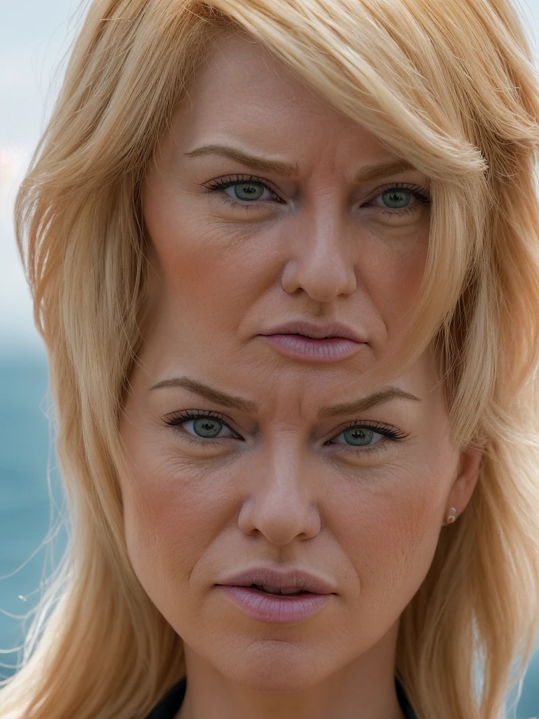portrait of Donald Trump with feminine hairstyle, ultra realistic, 8k full HD, low angle, unreal engine 5, cinematic, masterpiece, insane detail, real photography, bright colors, sun-soaked colours, Fujifilm X-T4, Sony FE 85mm --ar 900:1600 --s 750 --style raw --v 5. 2